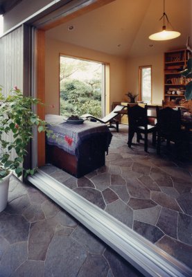 ◇ 書 斎 ◇ 石張りの書斎。 テラスも石張りとし連続感のある空間となっています。