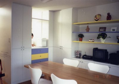 ◇ ダイニングの飾り棚 ◇ カラフルなカウンターを使ってポイントに。 |