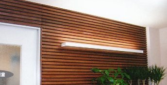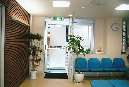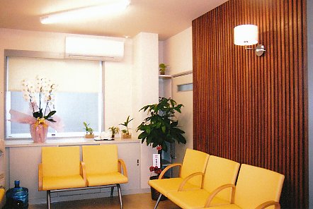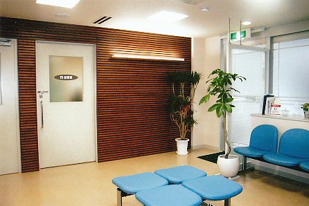 ![]() ◇ 待合室 ◇ 米松板張りの上に細長い角材を横張り、木の暖かい雰囲気に深みを加えました。 |